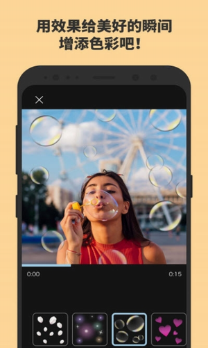 2、可以随意添加各种特效道具,不管是背景音乐还是拼接几段影视制作成一段都行。
