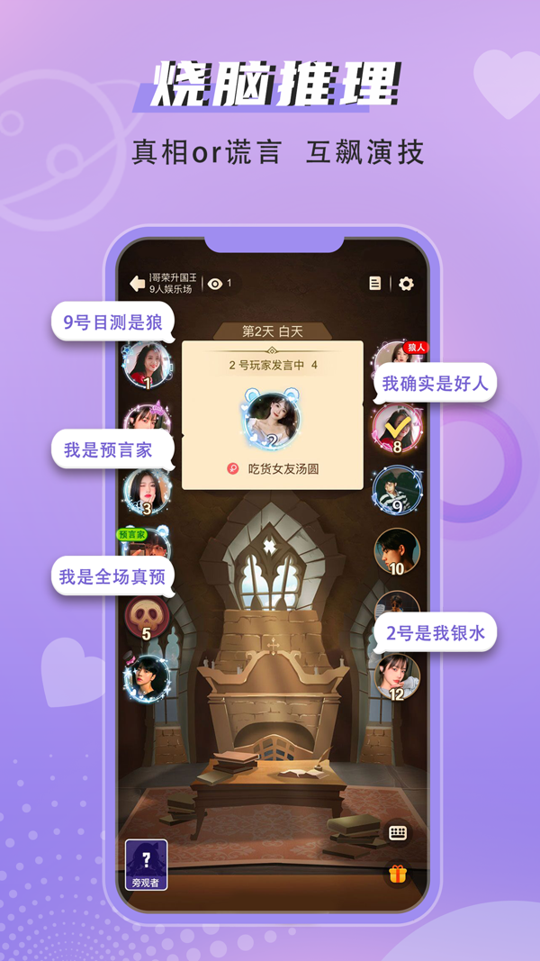 全网年轻人一起参与,畅所欲言,不插麦,语音流畅。互飙演技,真相还是谎言,秀出你的骚操作!