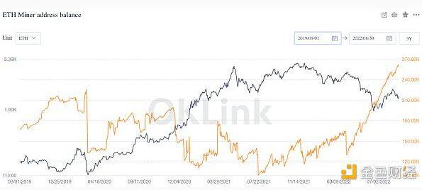 根据 OKLink 的数据,矿工余额,即矿工持有的 ETH 数量,也从去年的 114.255 增加到 261.849.增加了一倍多。这可能表明矿工在合并之前看涨,因为他们选择持有 ETH 区块奖励而不是出售代币。