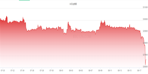 据最新数据显示,比特币今日最新价格为:$26446≈ ¥19.26万,今日价格下跌,-7.59%,24小时最高价格为:$28651,24小时最低价格为:$25649,24小时成交量:125.38万,24小时成交额:$332.01亿。