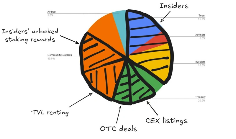 做市分配:一部分代币供应将被保留,用于在中心化交易所(CEX)上进行做市。这有一定积极意义,因为它可以增强该代币的流动性,然而当做市商同时也是该项目的投资者时,就会产生利益冲突 —— 这使得他们能够使用做市份额来对冲自己仍处于锁定状态的投资份额。