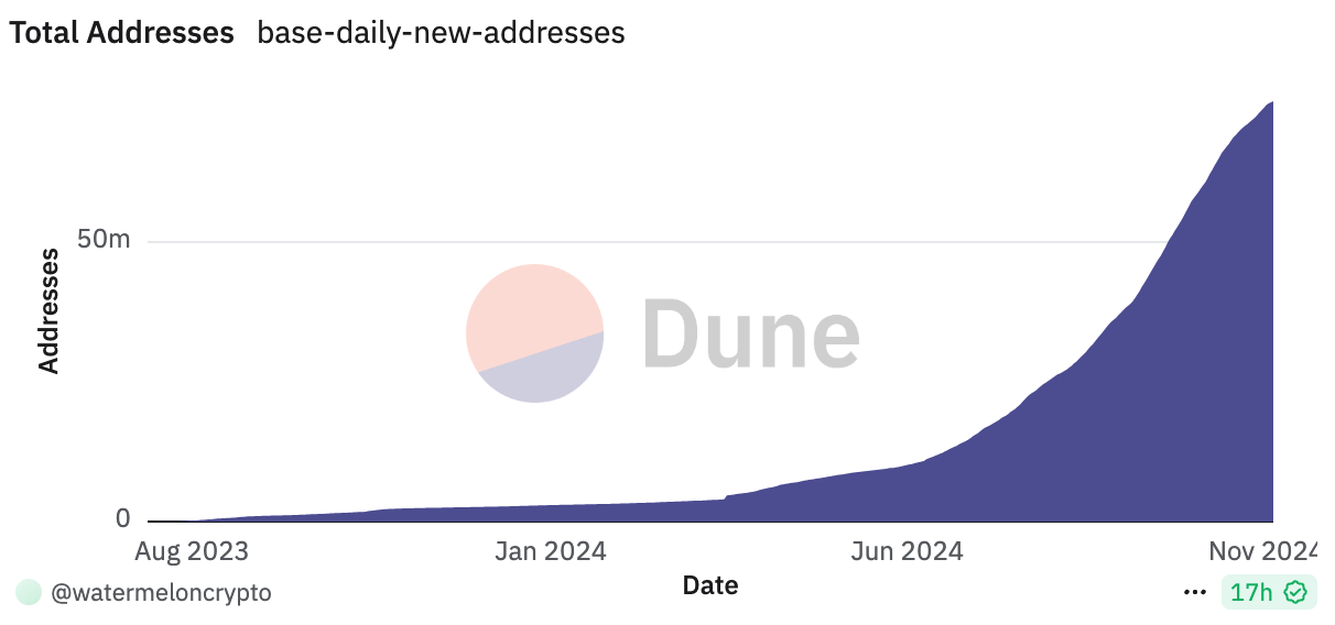 图-2Base链上地址数(数据来源:https://dune.com/watermeloncrypto/base)