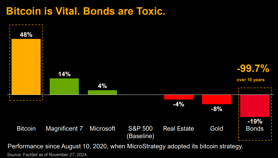 比特币的年度表现比微软高出 10 倍,而债券的表现更不尽如人意。